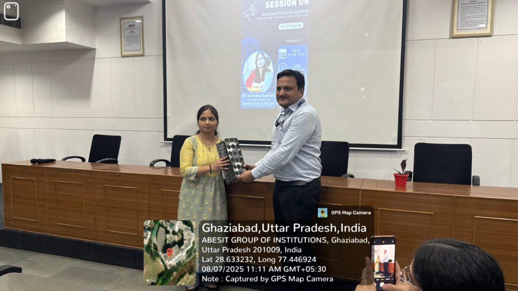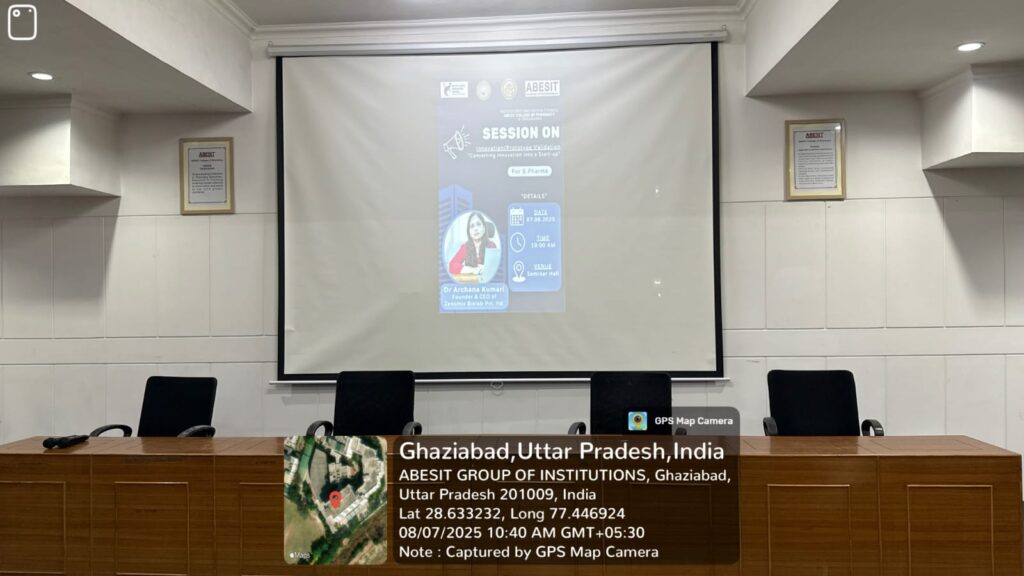 The Institution’s Innovation Council at ABESIT College of Pharmacy proudly hosted an engaging and insightful session on “Innovation/Prototype Validation – Converting Innovation into a Start-up” for our aspiring student innovators and incubatees.