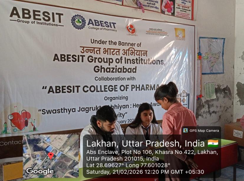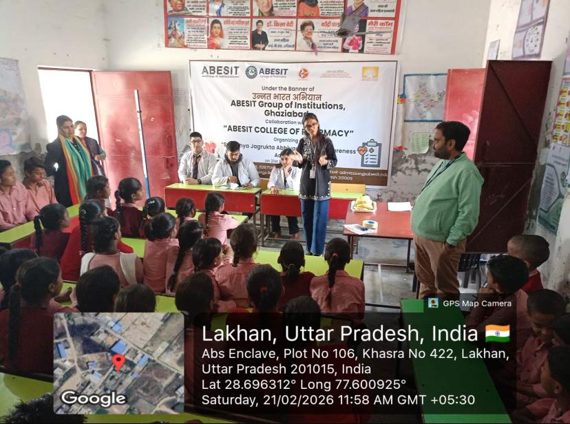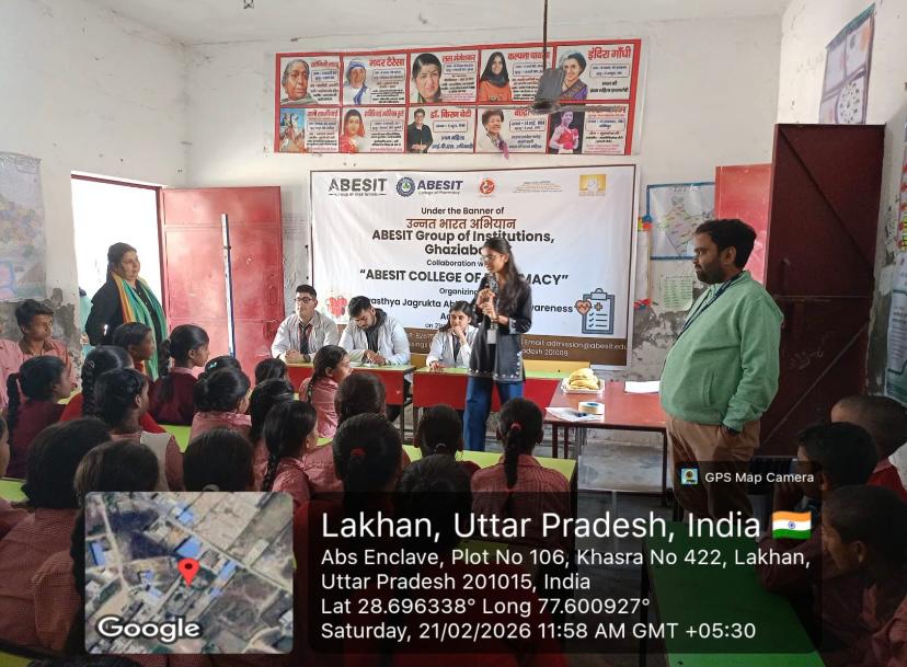ABESIT College of Pharmacy in collaboration with ABESIT Group of Institutions, under the Unnat Bharat Abhiyan (UBA) 2.0 initiative, successfully organized a *“Swasthya Jagrukta Abhiyaan”* at the Government Primary School in Lakhan village (adopted village of the institute).